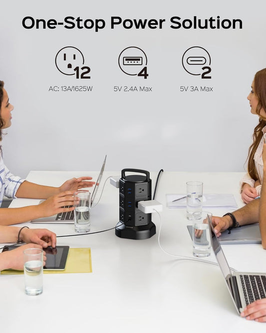 Surge Protector Power Strip Tower with 12 Outlets and 6 USB Ports, 1625W 13A Charging Station wit...